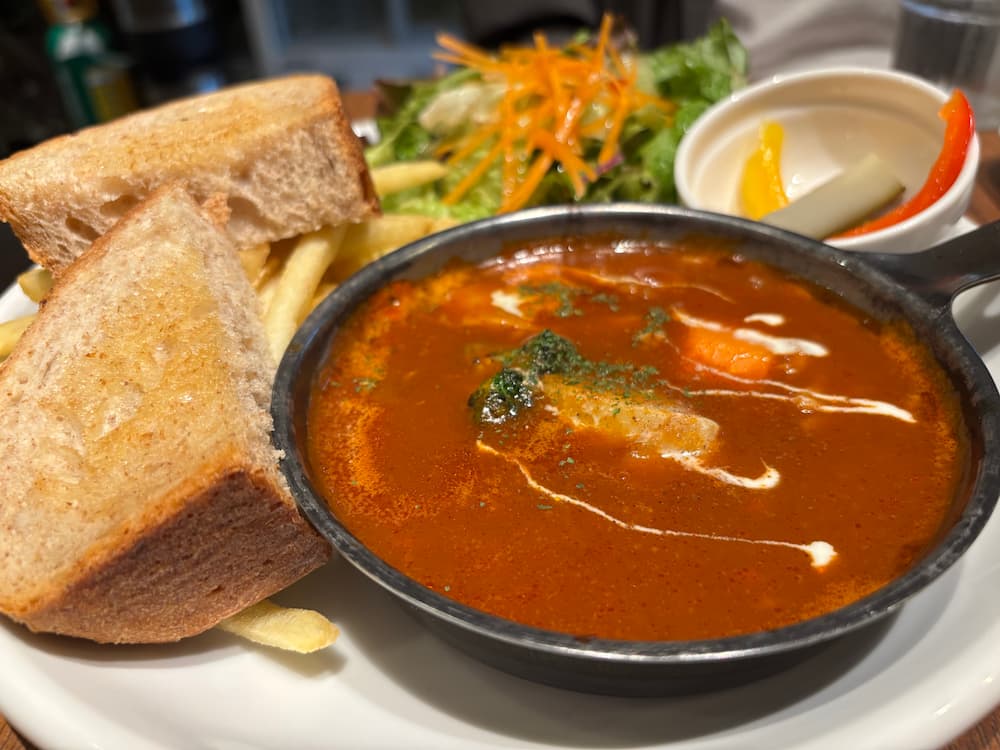 さらりとしたシチューはトマトのようなほのかな酸味があり、コクの中にも爽やかさを感じる味わいでした。