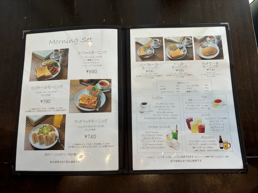 今回はモーニングで伺ったので、テーブルにはモーニングのメニューのみが置かれていました。