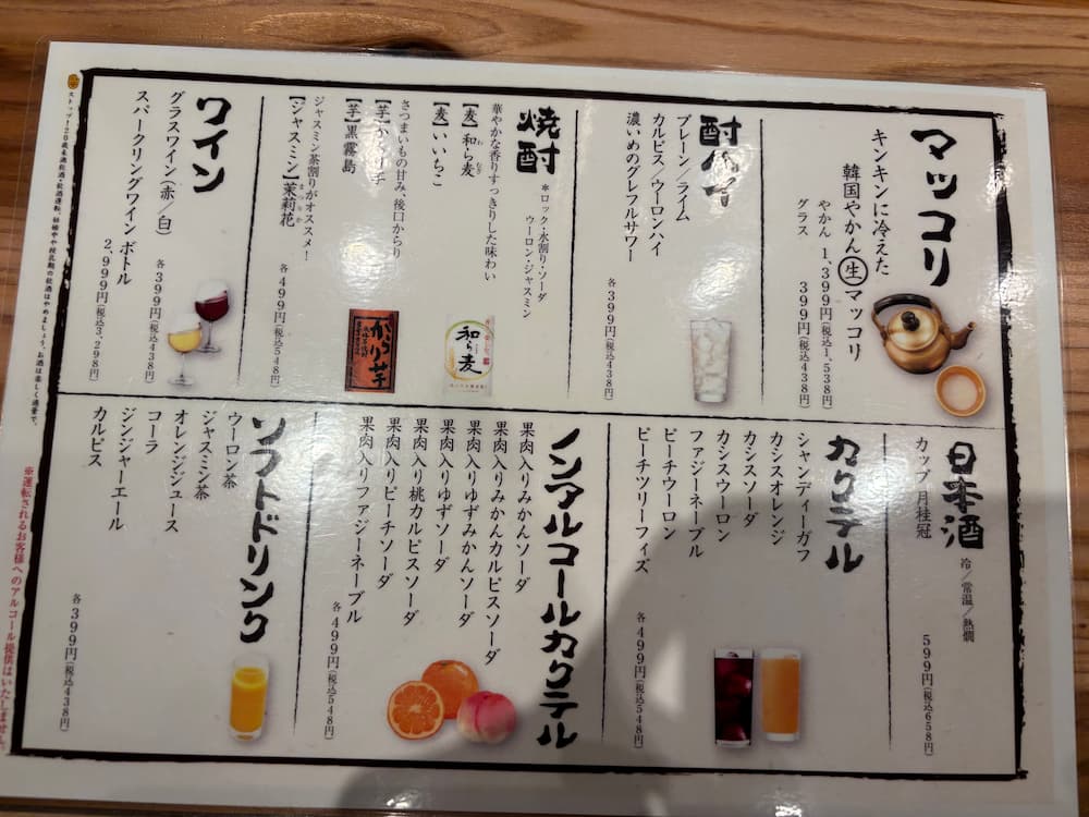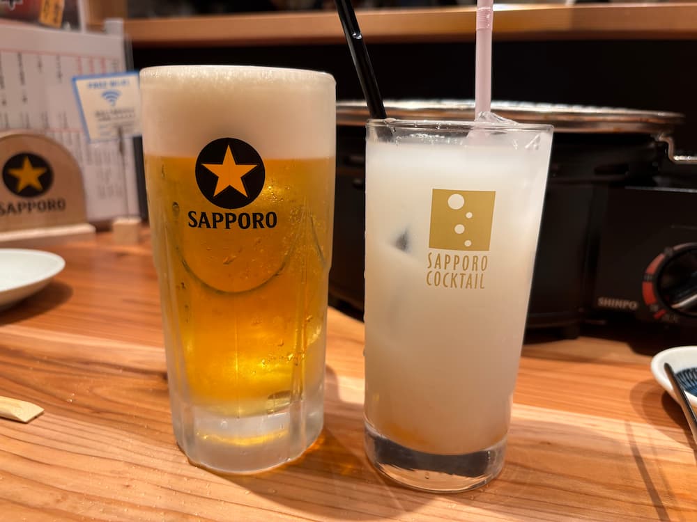 まずは「ビール」と、ノンアルの「果肉入り桃カルピスソーダ」で乾杯!