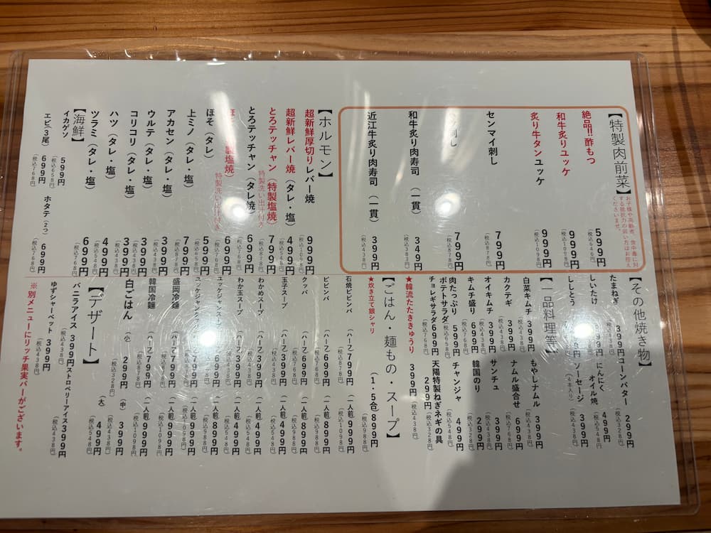 ※太字は焼肉メニュー・黄色ラインはおすすめメニュー