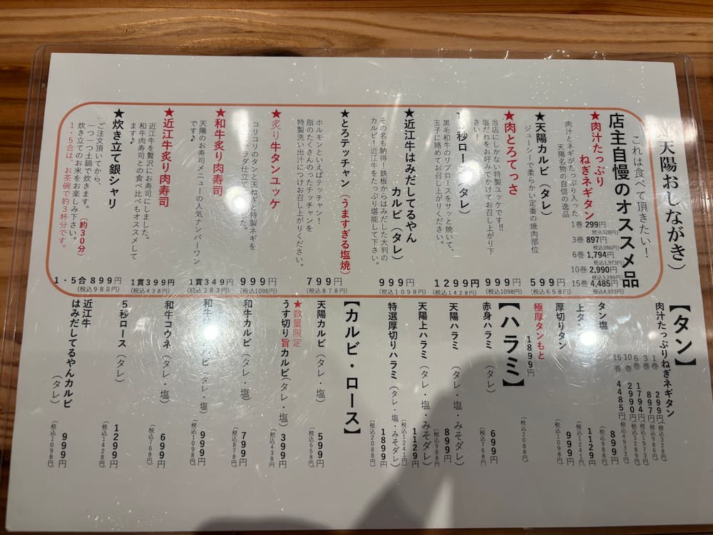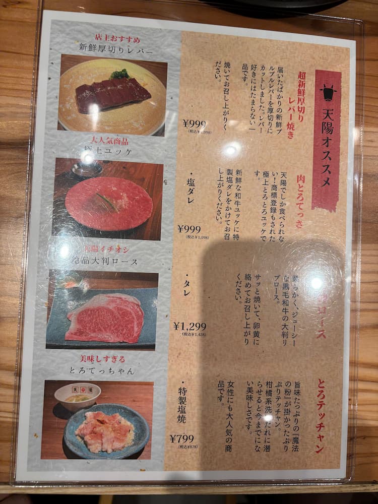 天陽のメニューを実食!頼むべきおすすめ焼肉メニューはこれ!
