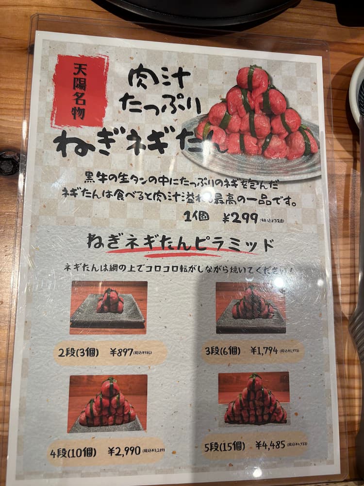 メニューには、名物の「ねぎネギたん」や「肉とろてっさ」など、思わず写真に撮りたくなるような映えメニューがずらり。