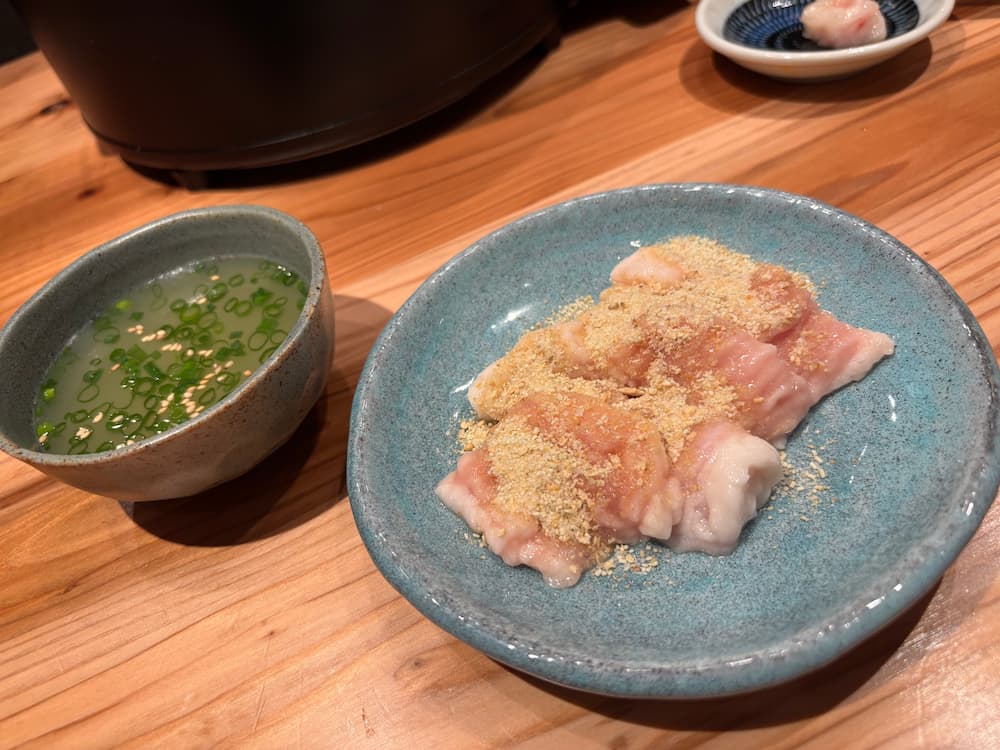 「ほそ」は塩でお願いしたところ、とろテッチャン同様、特製の洗い出汁が添えられていました。