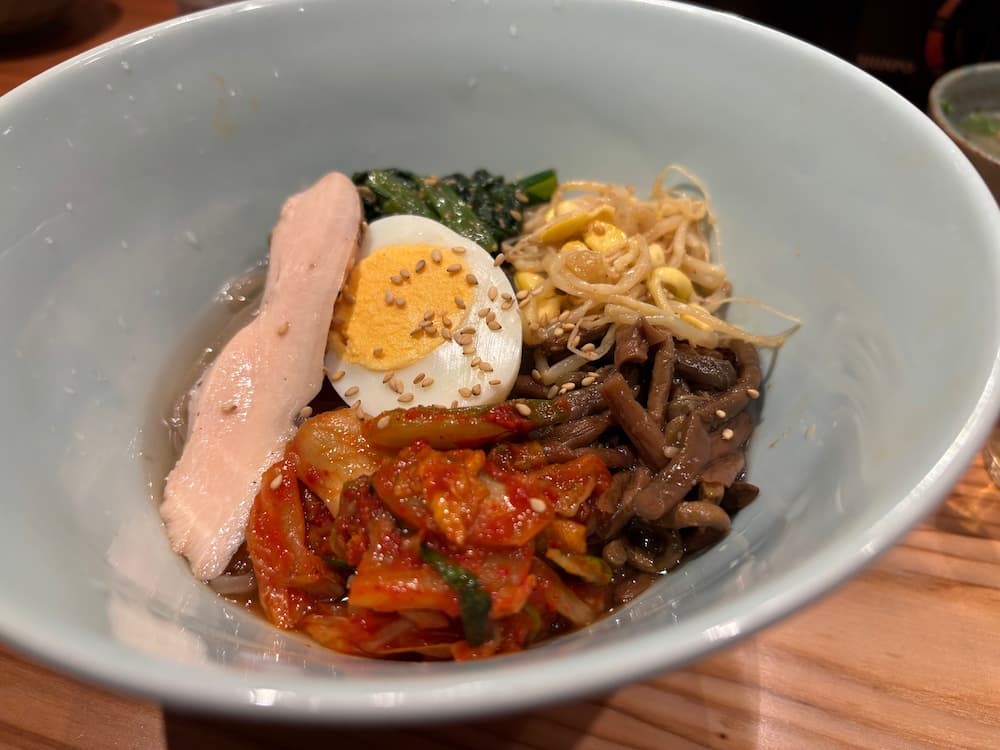 ナムルやキムチもたっぷりのっていて、最後の最後まで大満足の一杯でした。