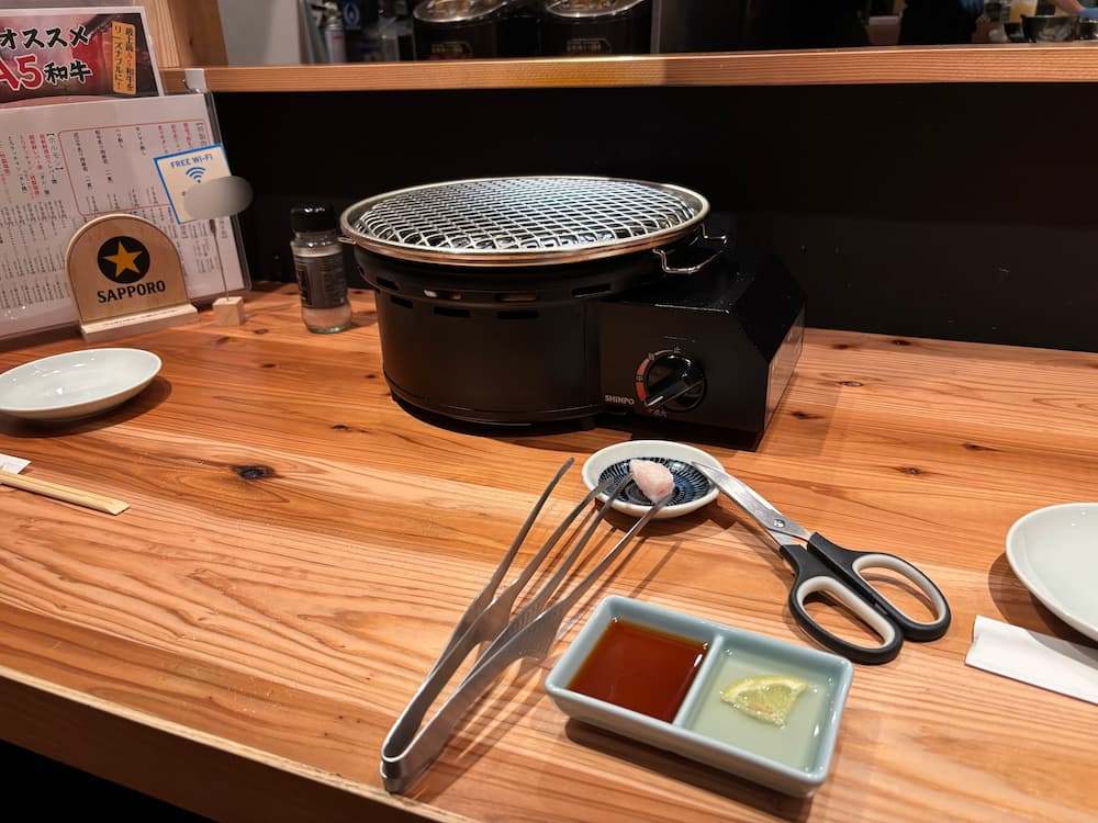 カウンターの目の前には焼き台があります。網交換には料金がかかるそうなのでご注意!