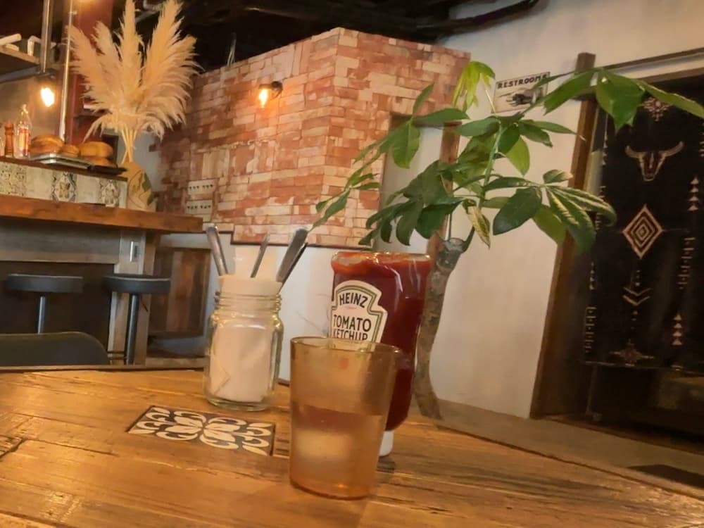 塩胡椒はかかっていていますが、物足りない方はテーブルに置かれているケチャップを追加してもいいかもしれません。