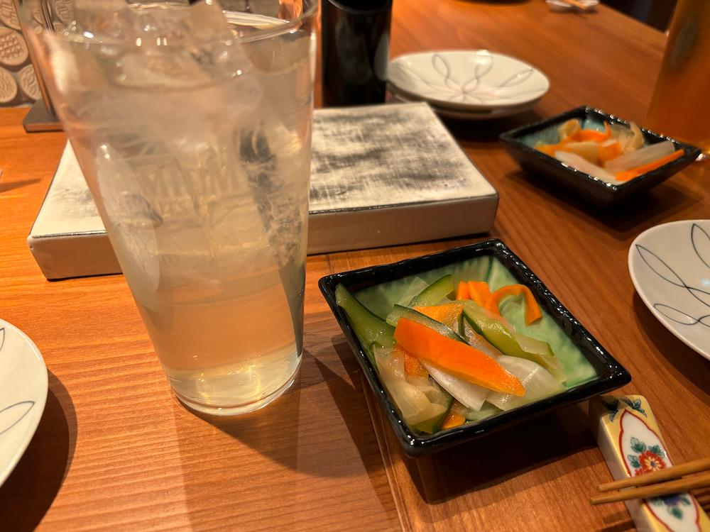 付き出しはガリの入った野菜のお漬物でした。さっぱりでお口直しになります。