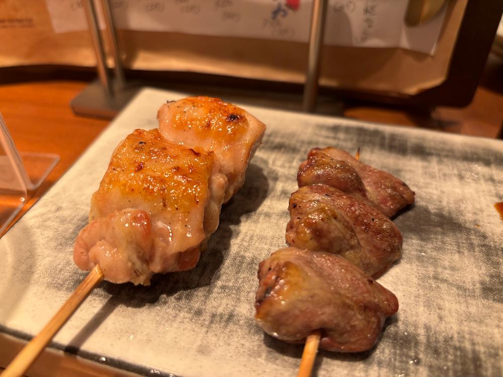 ⑥さんかく(塩)、ひねどりもも(タレ)、こころ(タレ)