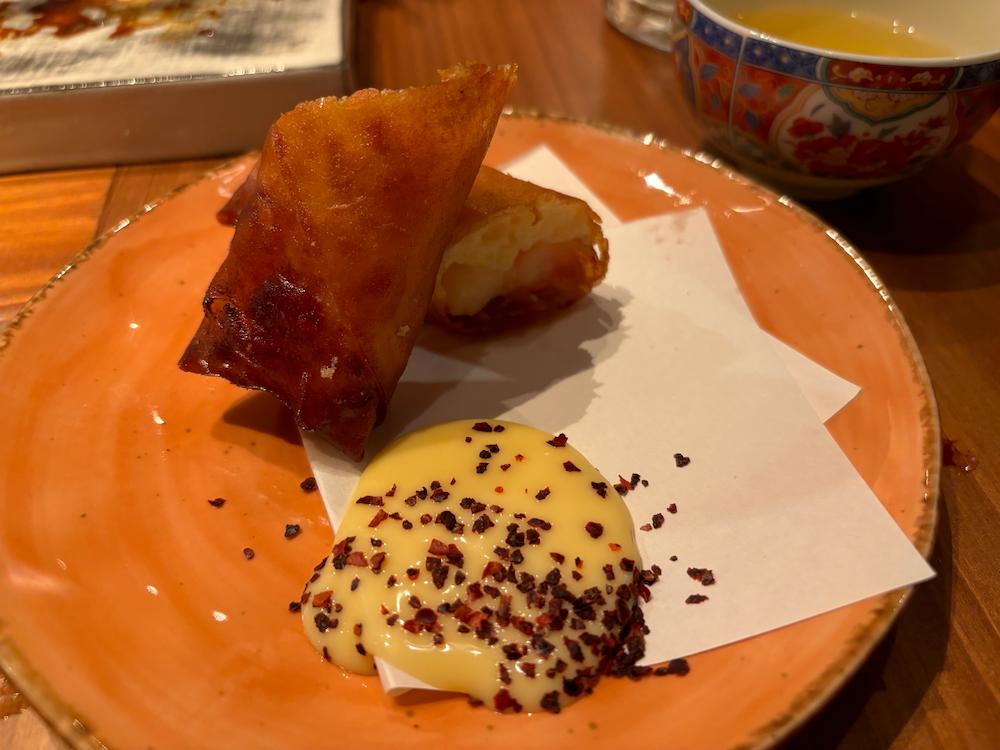 あとは「酢もつ」と「海老クリーム春巻き」を頼みました。