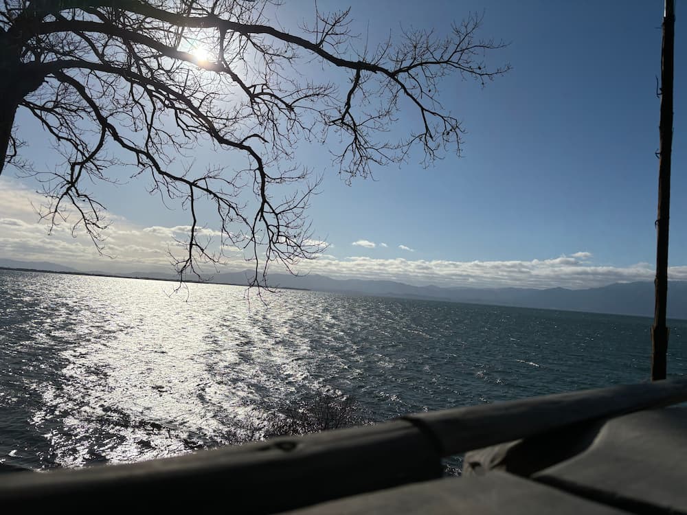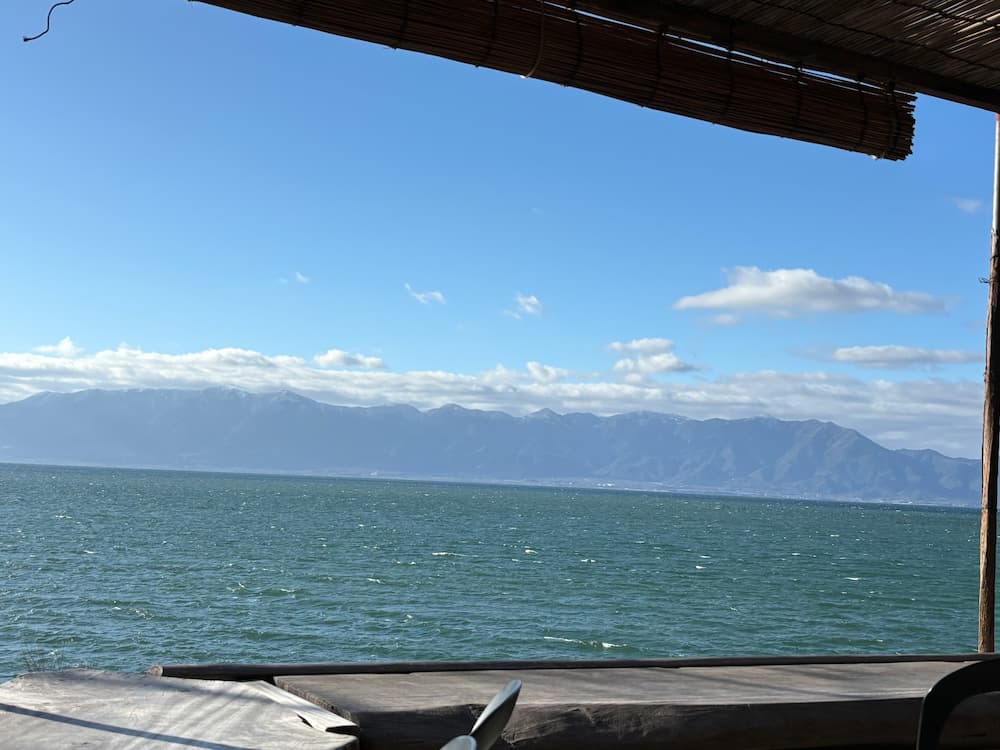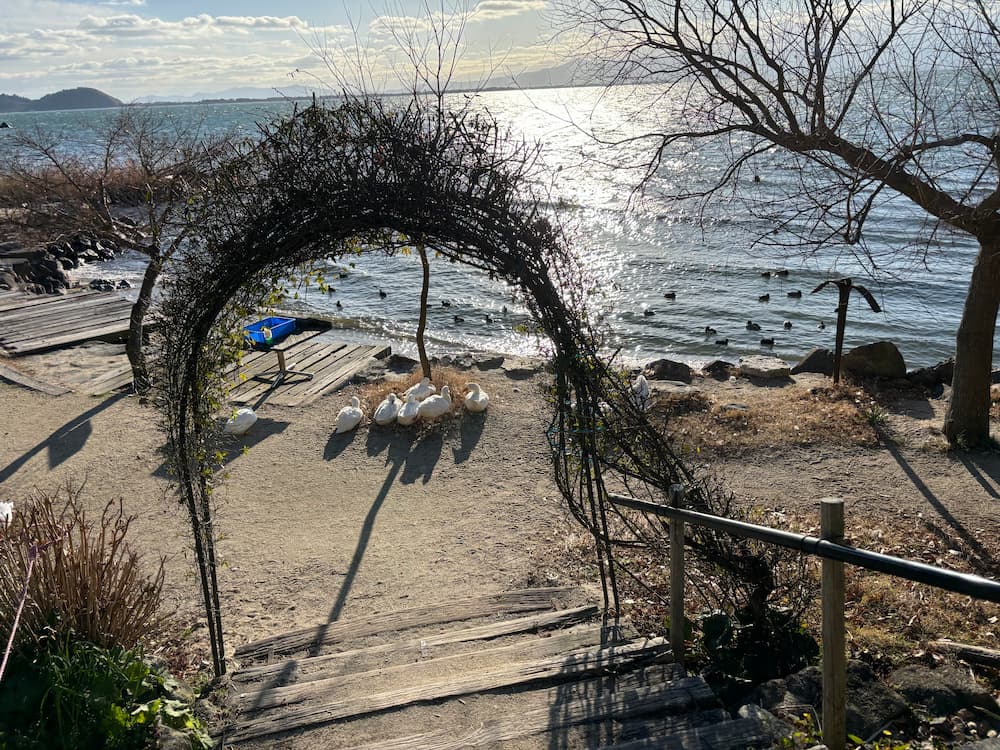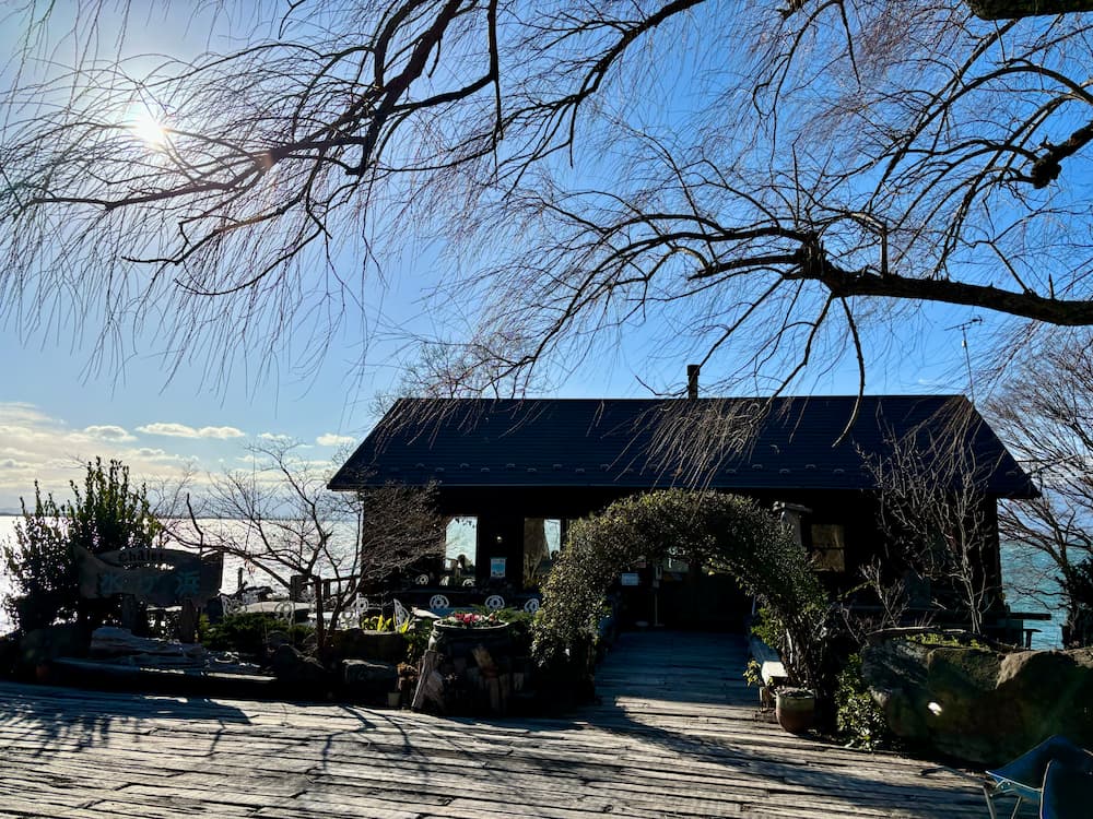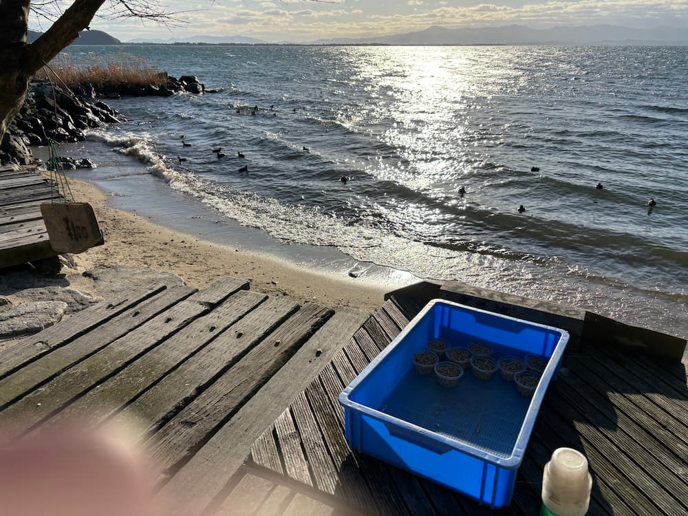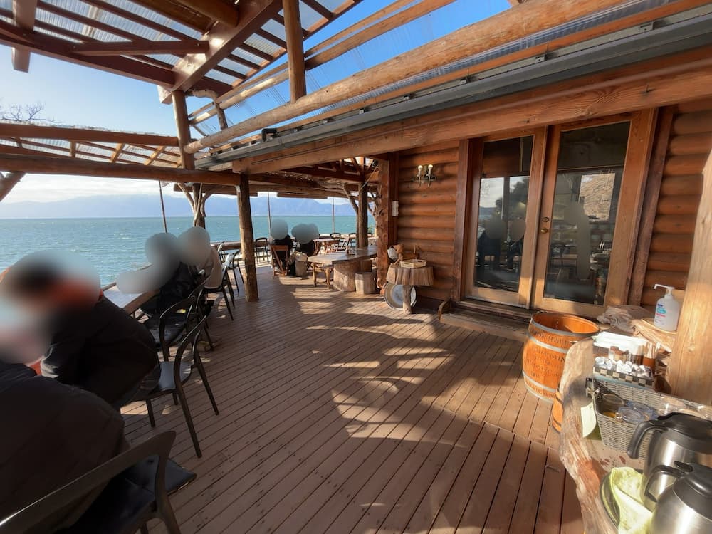 テラスから見える琵琶湖はまさに絶景!冬は寒いですが、それでもこの景色のために来る価値があります。