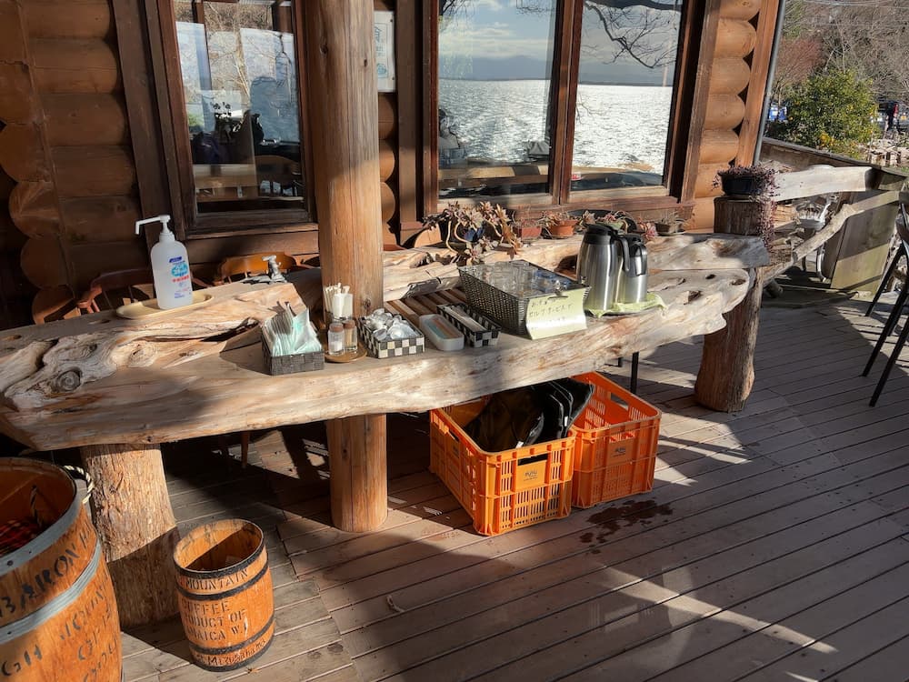 今回はせっかく来たし琵琶湖を肌で体感したい!と思いテラス席を選びましたが、正直めちゃめちゃ寒かったです。(2月半ば)