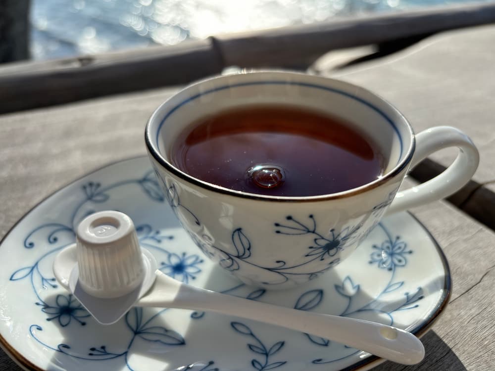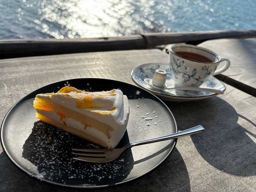 温かい日差しの中でいただくケーキと紅茶・・・最高です。