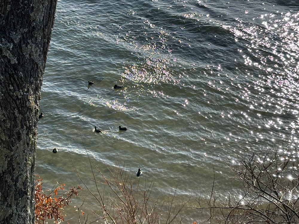 テラスから、不意に下を覗くと鳥がいっぱい。波に身を委ねて揺られるカモたちがかわいい。