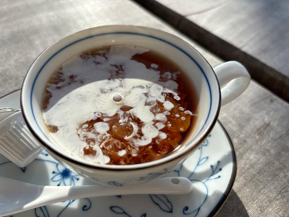 冬の風の強い日は提供された瞬間から冷め始めるので、温かいうちに先に飲んじゃいます。