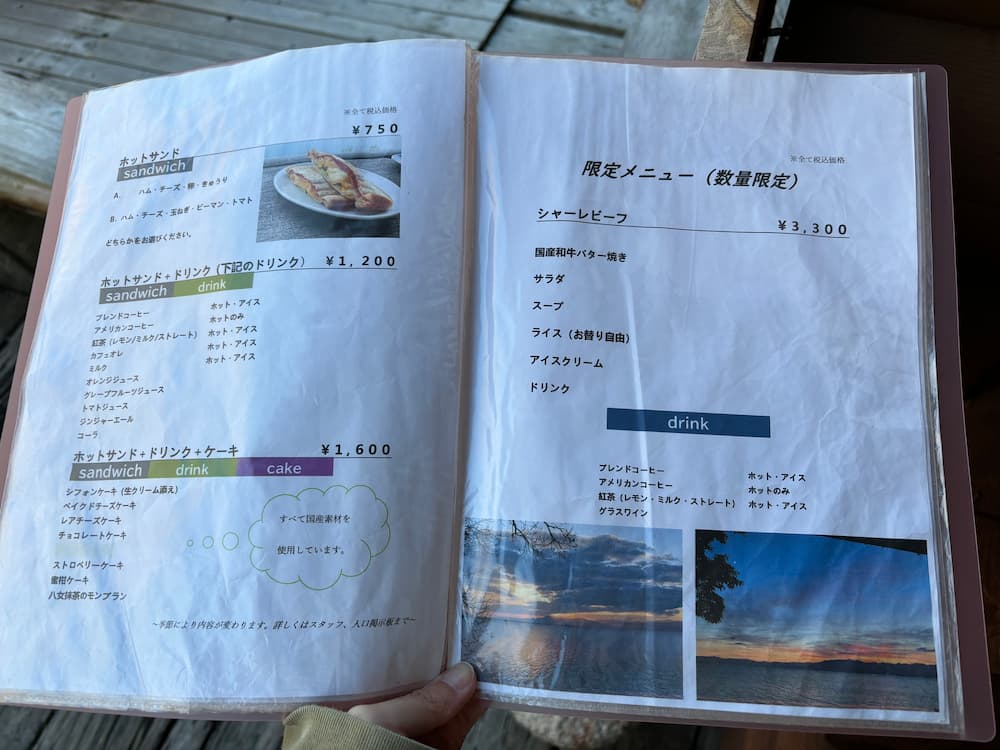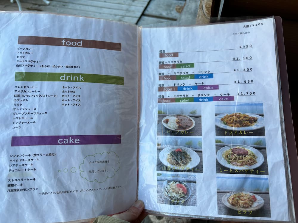 メニューの中身は、カレー・スパゲッティ・ホットサンドなどの軽食やケーキなどが用意されていて、ザ・喫茶店といったラインナップ。