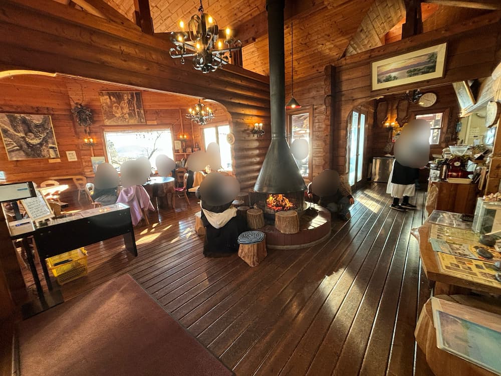 真ん中に暖炉があって、とても落ち着く空間でした。