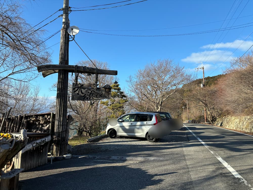 お店の両サイドにある砂利が敷かれた場所が駐車場です。