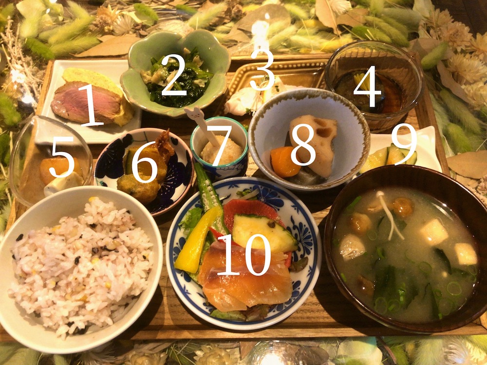 わたしが注文したのは、10種のおばんざいセットです。10種類という豊富な品数に惹かれました。