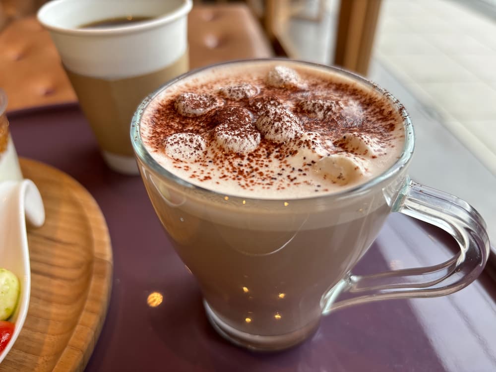 まずはマシュマロココアから頂こうとしたのですが、激アツすぎて猫舌のわたしには飲めませんでした。