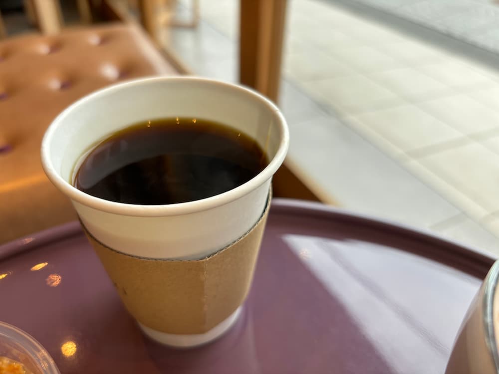 コーヒーは紙コップにカップスリーブがついている仕様です。