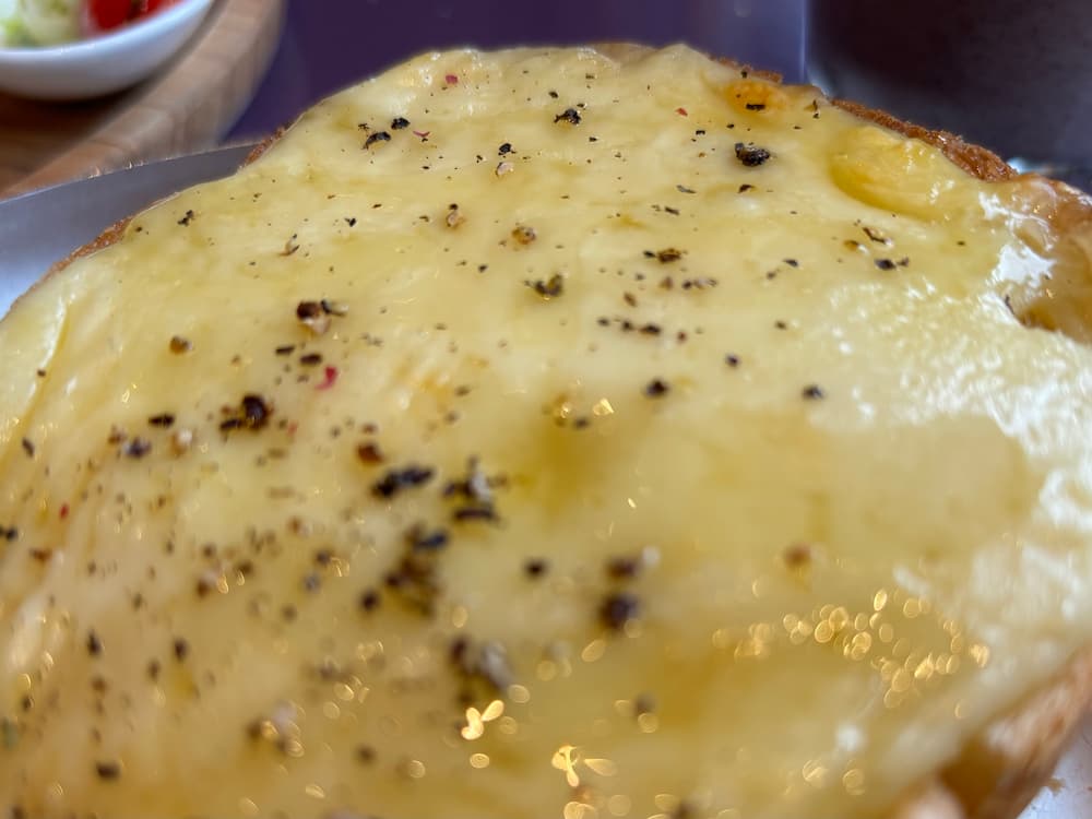 こちらもたっぷりのチーズに黒胡椒、そして半熟のたまごにオリーブオイルがかけられています。