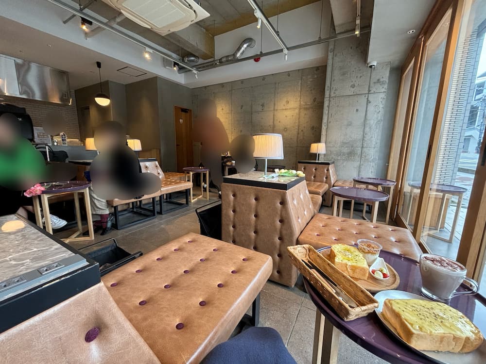 店内は26席で、4人がけテーブル席が2つ、それ以外は全てソファ席です。テーブル席が少なく、ソファは形状的に大人数で向かい合って座ることができないため、1〜2人で来るのがおすすめです。