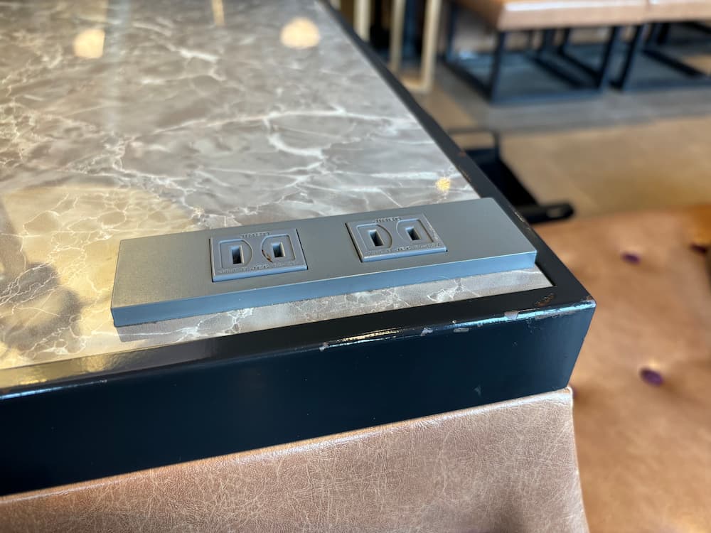 どの席にもコンセントがついているので充電もできちゃいます。なんて便利。