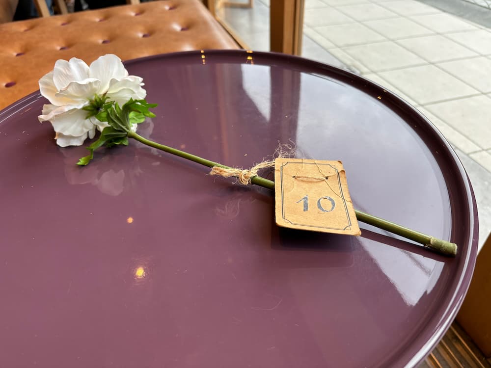 かわいいお花の番号札をもらい席へ戻り、自分の番号が呼ばれたらカウンターへ取りに行くセルフスタイルです。